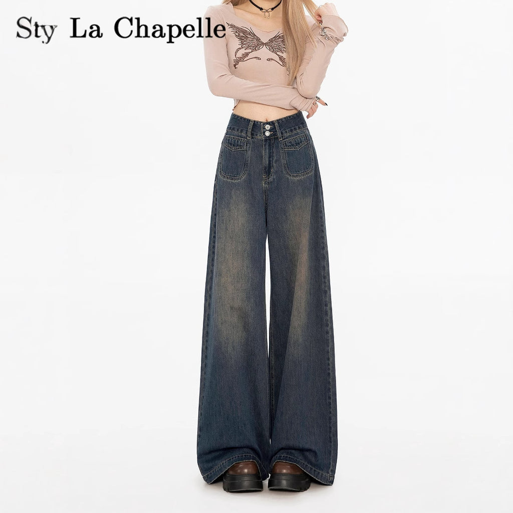 Loose And Lazy Style Women's High-waisted Straight Wide-leg Fleece-lined Jeans