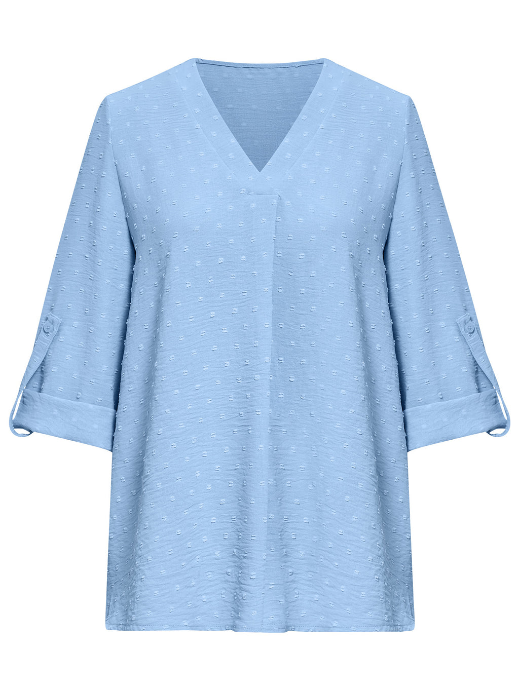 वी-नेक के साथ महिलाओं की तीन-चौथाई लंबाई ब्लाउज
