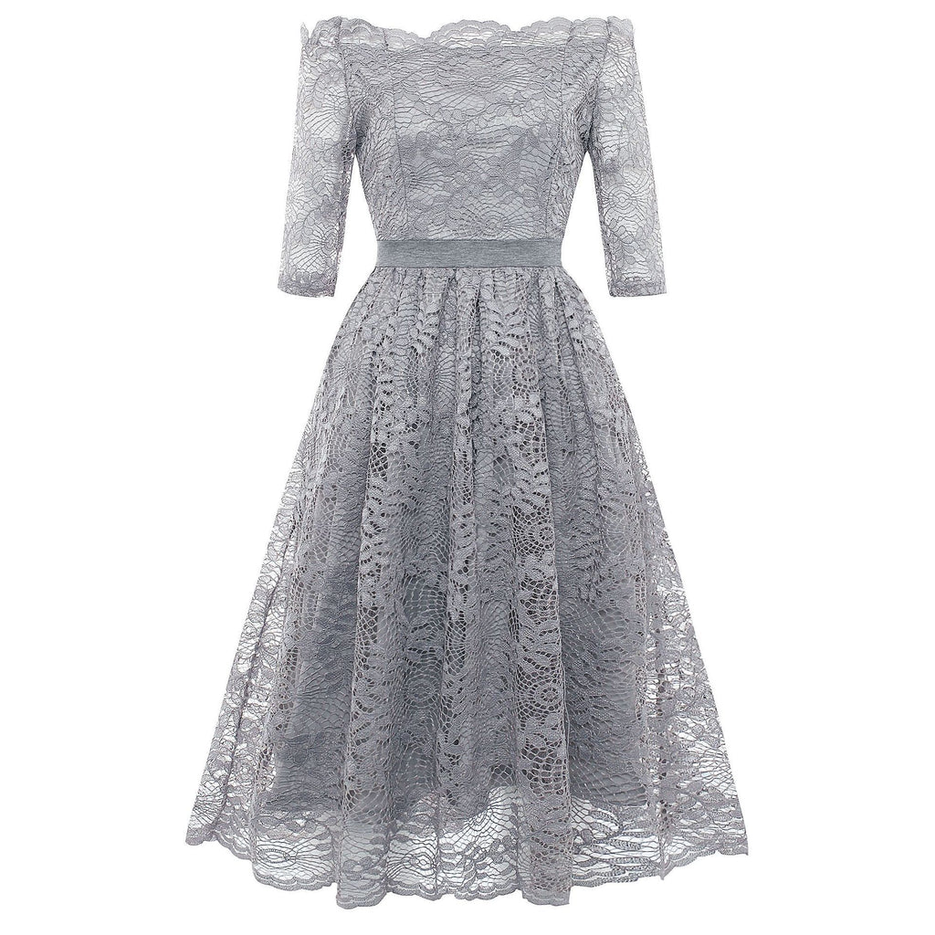 Copriti dall'alto verso il fondo in pizzo con questo abito di orlo in pizzo spalla con maniche a tre quarti e collo quadrato.