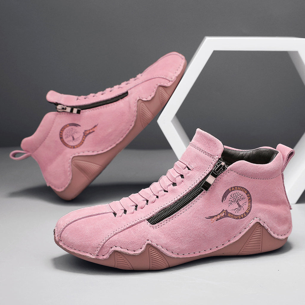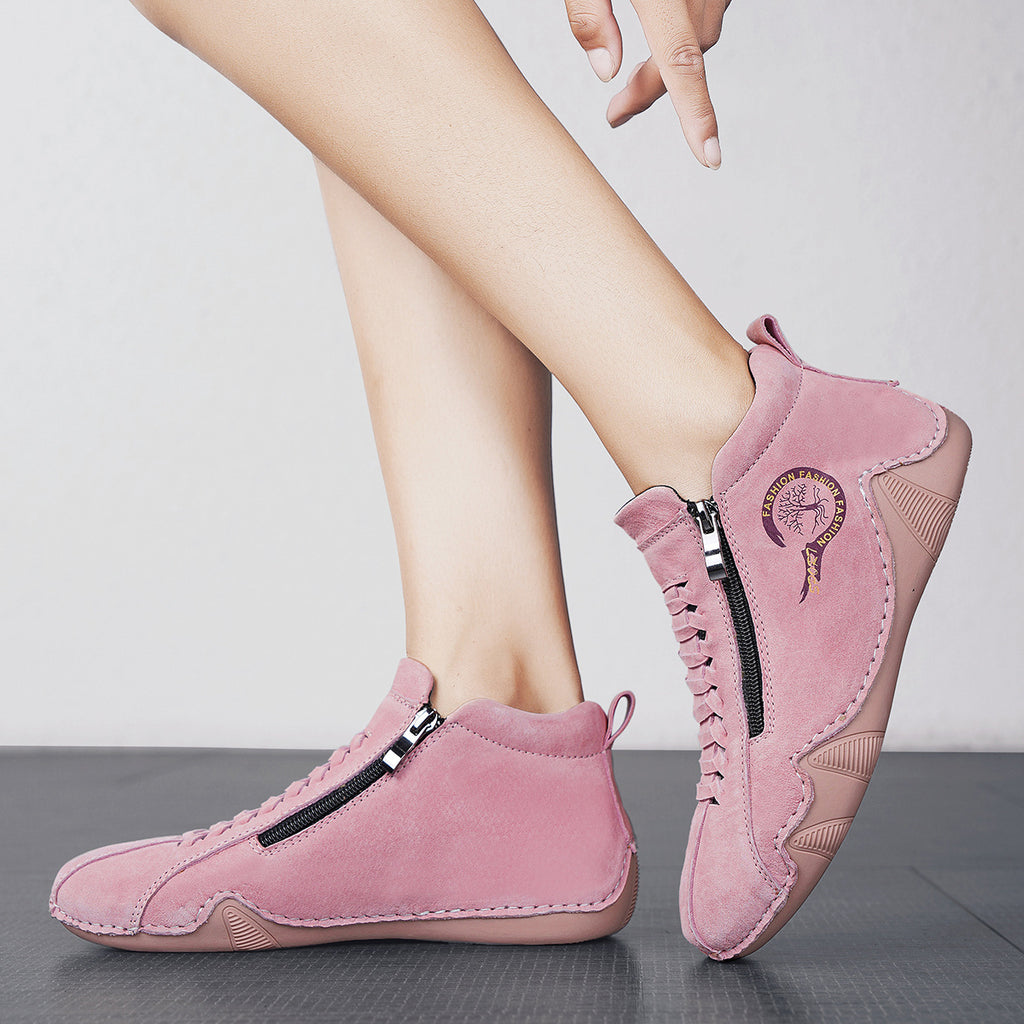 Women's Low Ankle Zip Up Side Sneakers with Laces