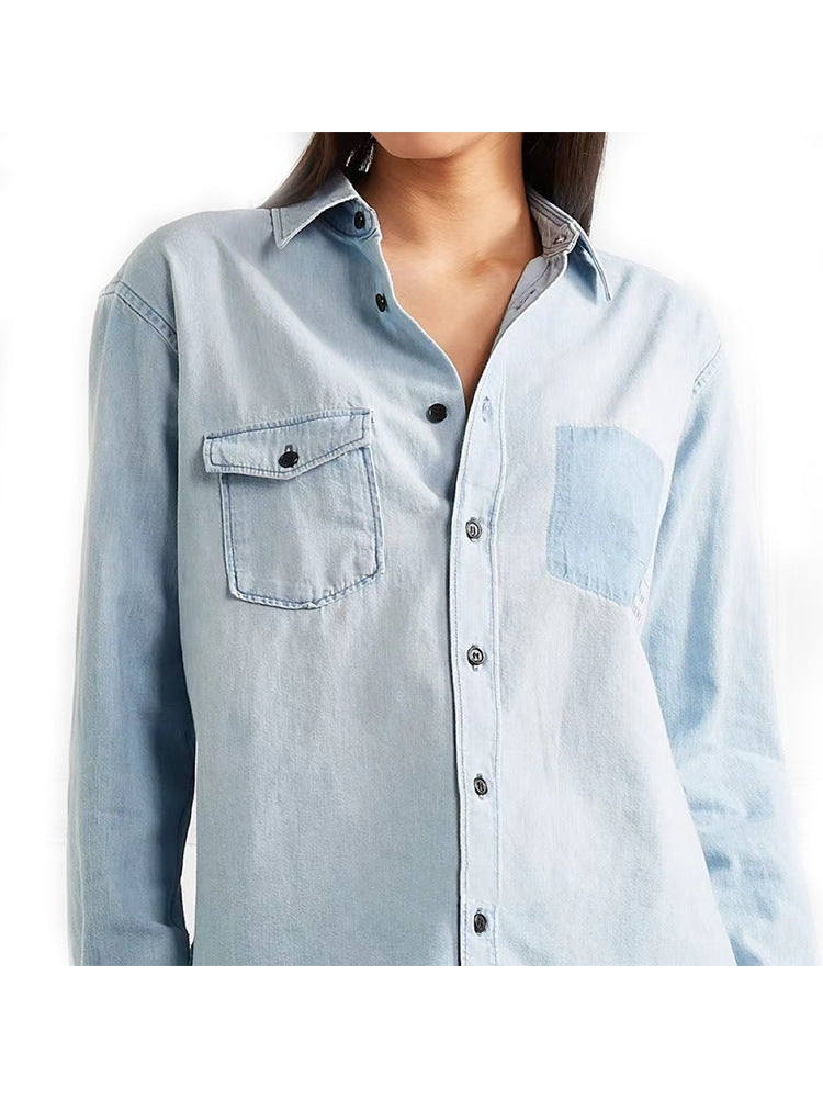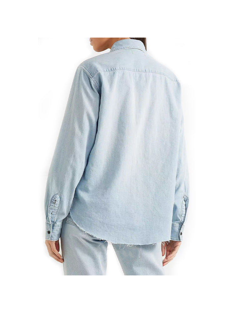 Dames lichtblauwe denim lange mouw shirt