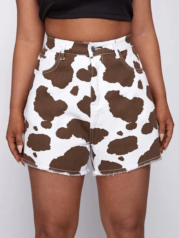 High -taille short van dames met ontwerpen van koeienafdrukken