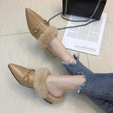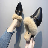 Step into luxury with these Faux Fur Lined Buckle Flats that feature a furry interior and forefoot with a closed pointy toe complete with a decorative buckle.