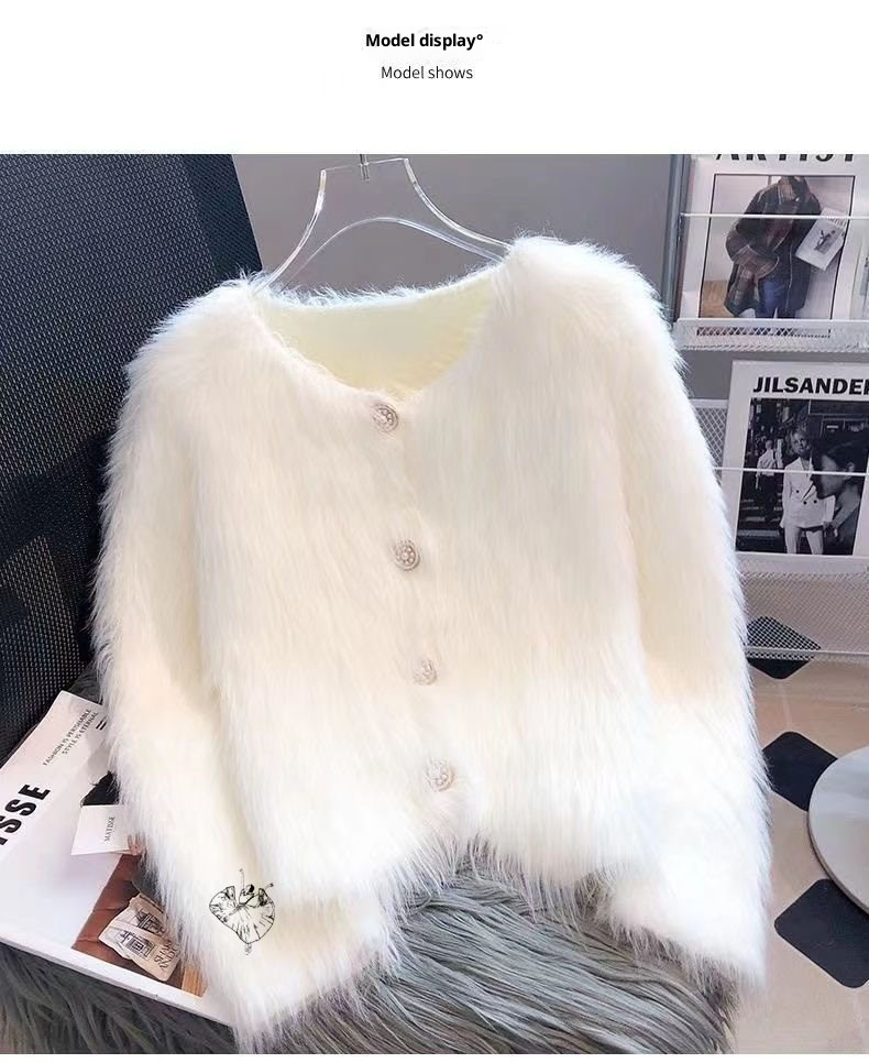 Faux Mink Velvet Knit Short Cardigan Sweater Coat Thickened