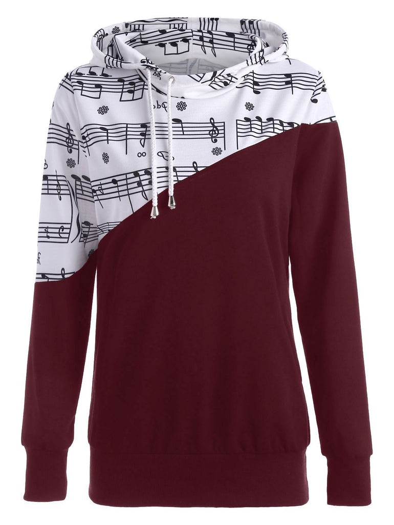 Express your love of music in this Half Time Music Note Sweater featuring an asymmetrical design with a music note pattern on the top and a solid color of your choice on the bottom.
