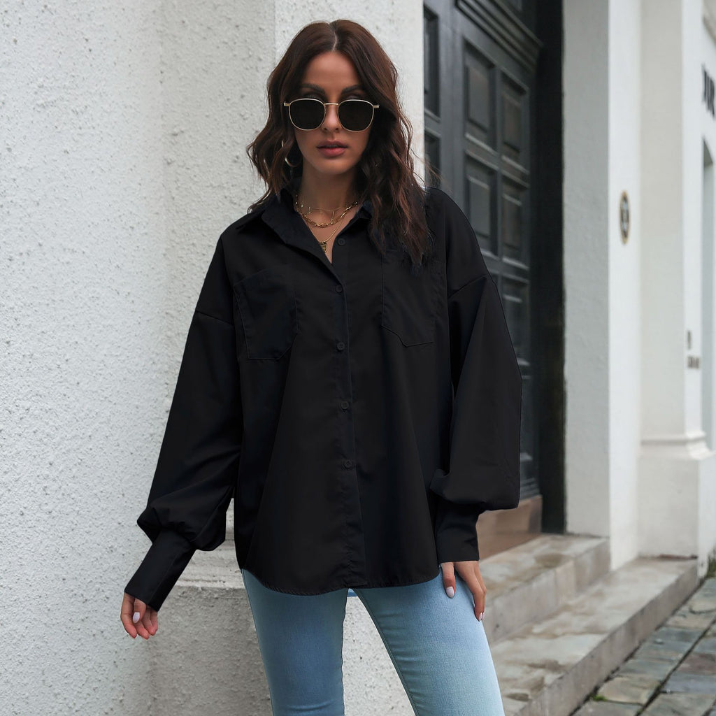Women’s Loose Fitting Button Down Blouse with Turn Down Collar