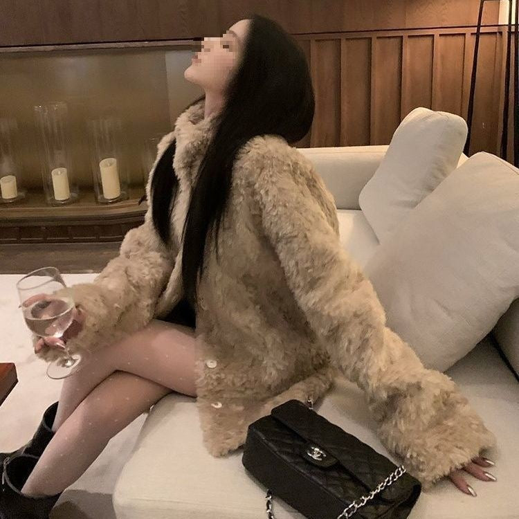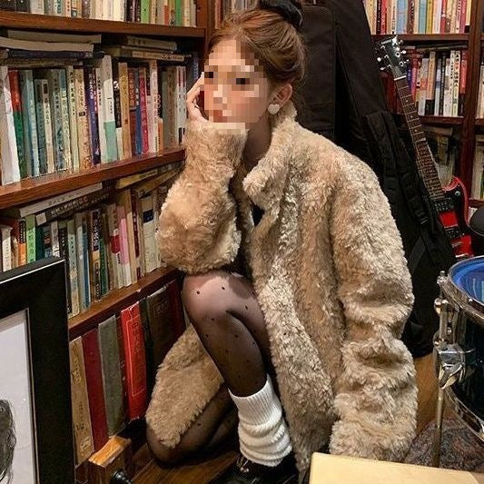 Women's Mid-length Stand Collar Loose Thick Fleece Coat