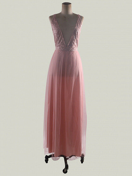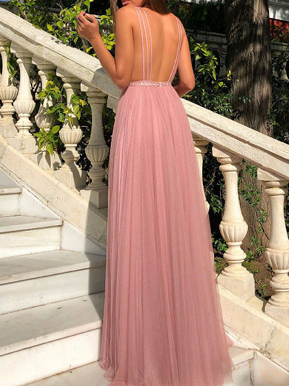 Elegante e sofisticado, o vestido rosa do estilo Princess feminino com decote em V e Maxi Hem é versátil o suficiente para qualquer ocasião formal. Possui um decote em V íngreme com ombros de tiras e uma saia maxi fluida.