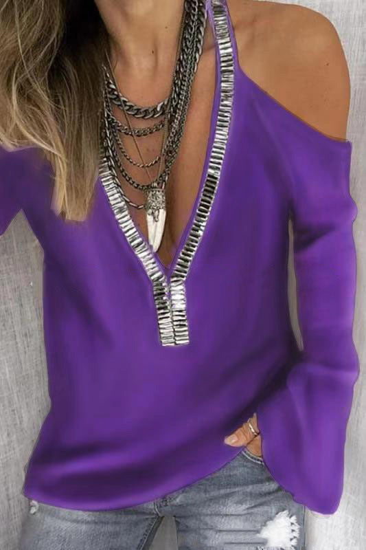 Caracterizado pelo decote em V e tiras brilhantes, a parte superior do ombro frio de lantejoulas de lantejoulas metálicas é uma parte superior atraente confortável e fria o suficiente para desgaste durante o verão, graças ao seu design de ombro frio.