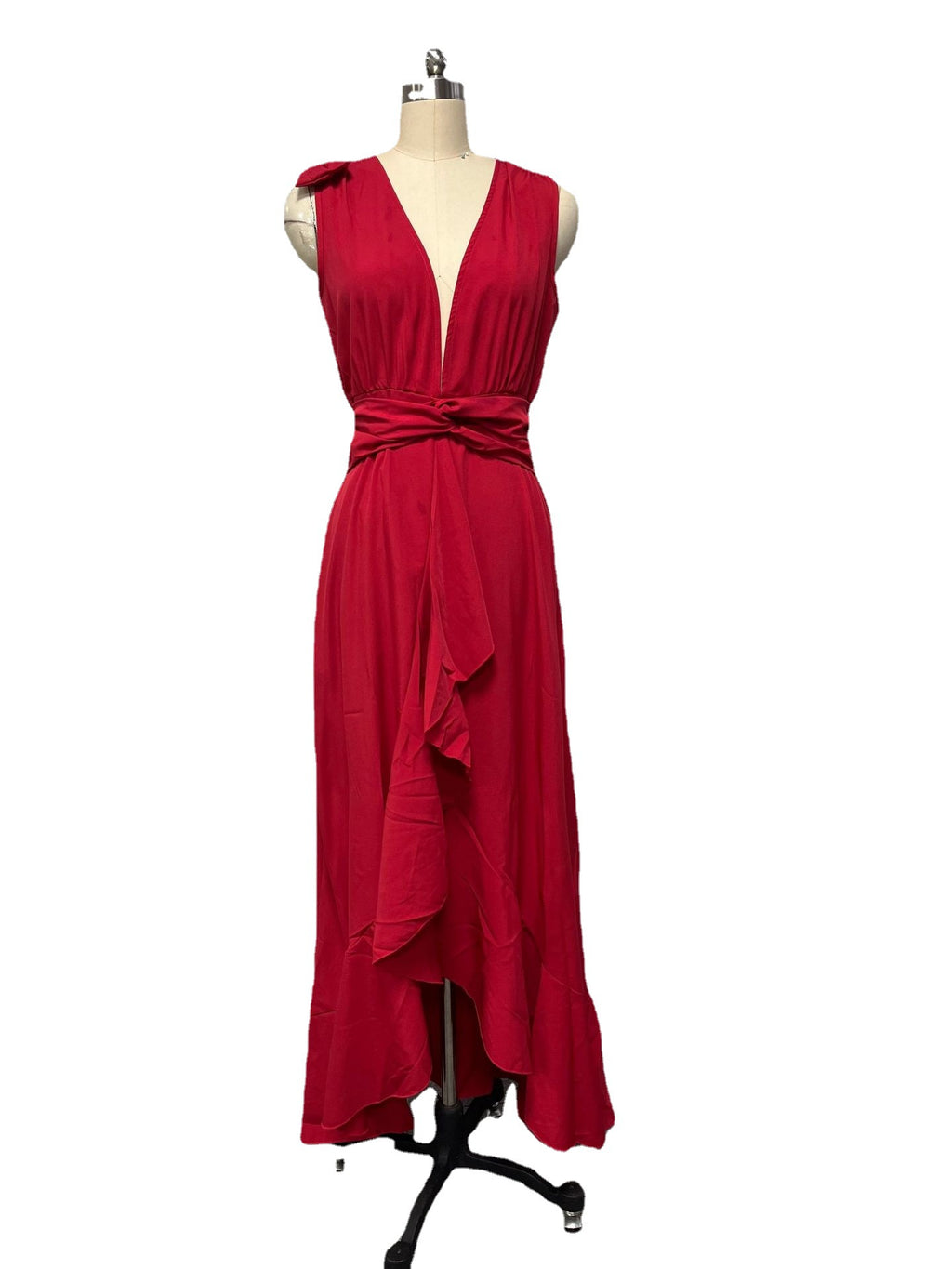 Tenha um olhar vintage neste verão usando o vestido maxi de cintura de gravata sem mangas feminina com bainha hi-lo. Possui um decote em V de baixo corte que desce até a cintura e uma bainha alta e baixa assimétrica para uma silhueta moderna.