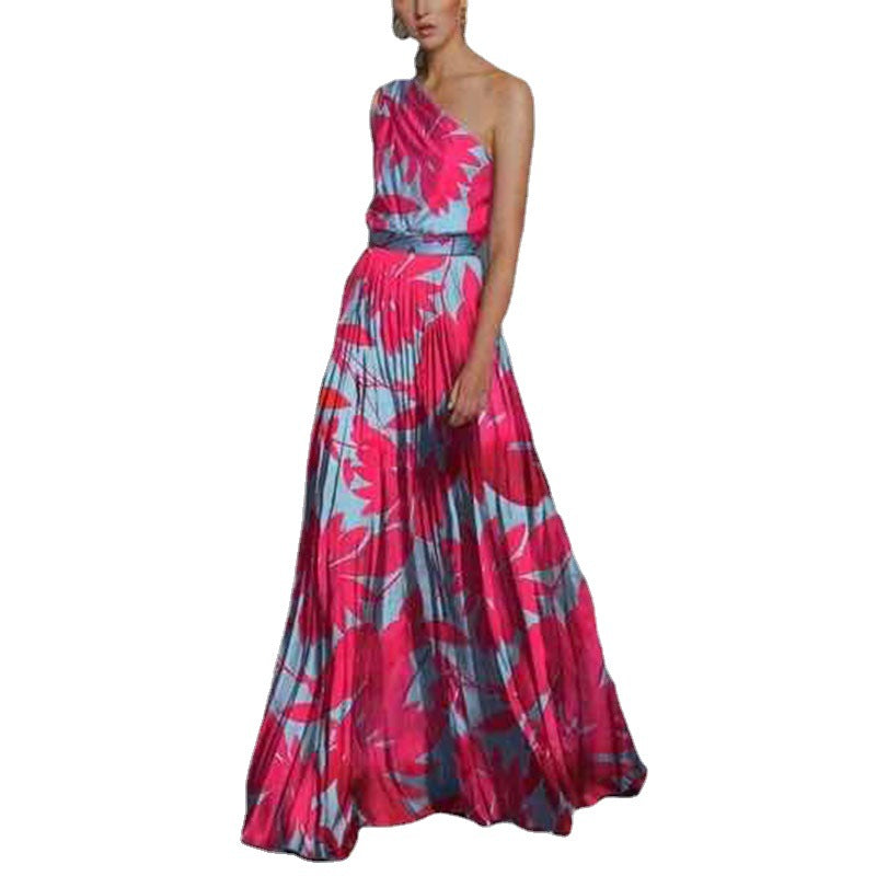Vestido maxi de inspiração tropical assimétrica das mulheres
